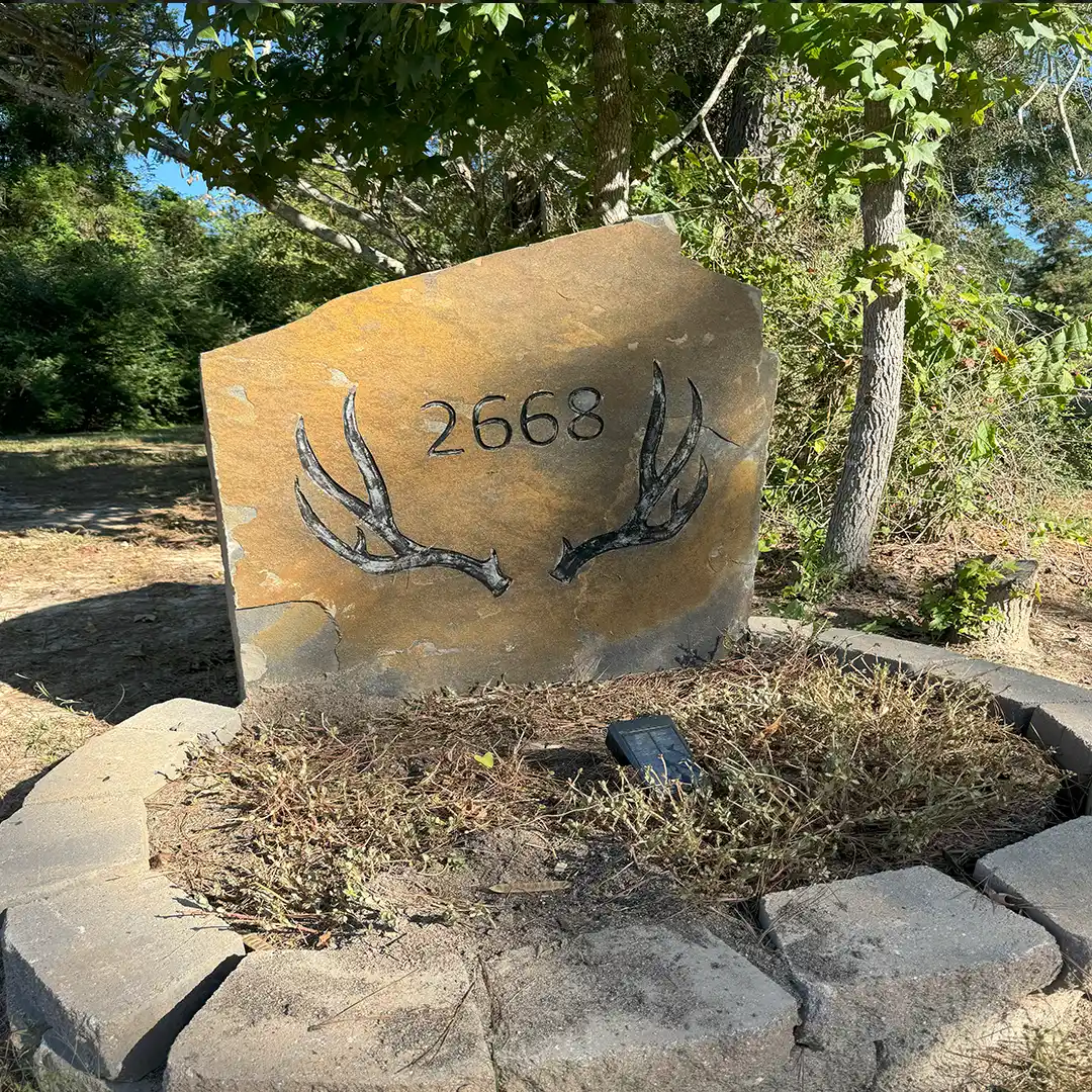 Business and address boulders from Garden Path Stone Center offer a bold, long-lasting way to showcase names, logos, or street numbers with natural charm.