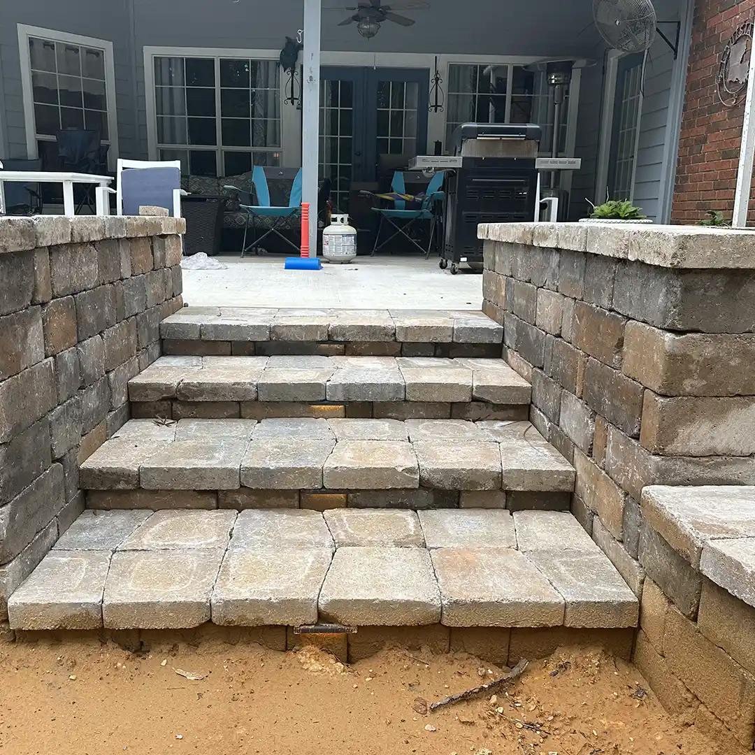 Dimensional chopped stone steps from Garden Path Stone Center provide a clean, natural look for elegant and durable outdoor stairways.