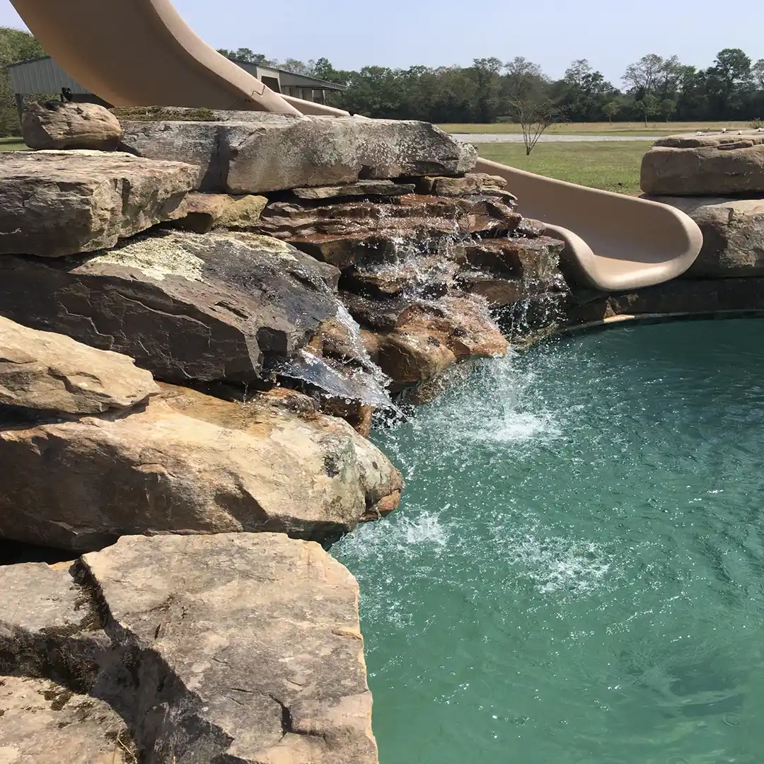 Pool waterfalls from Garden Path Stone Center bring soothing sound and natural beauty to your backyard oasis.