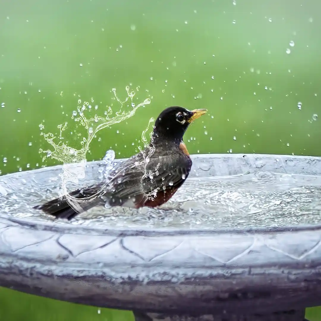Stone birdbaths from Garden Path Stone Center attract feathered friends while adding natural charm to your garden.