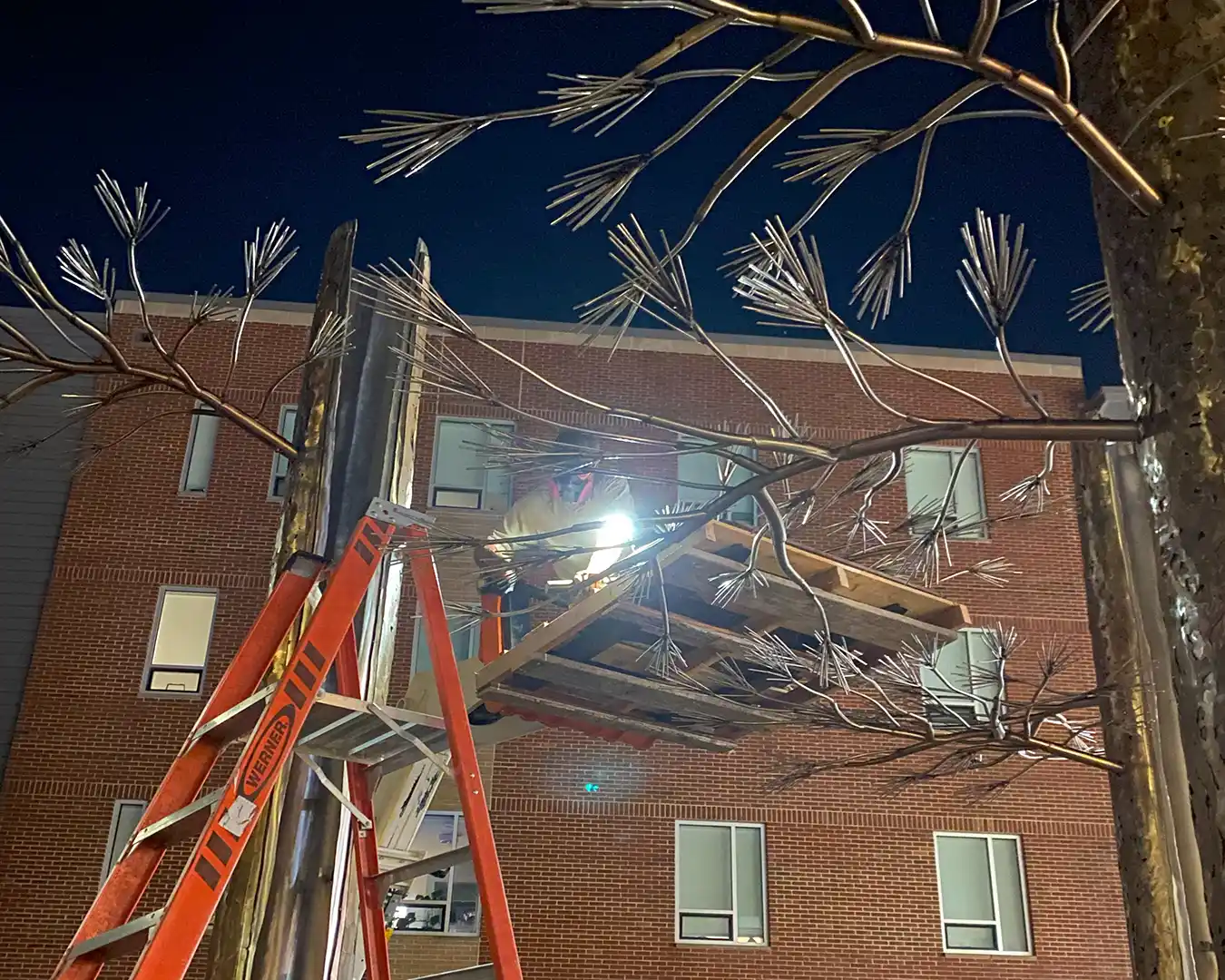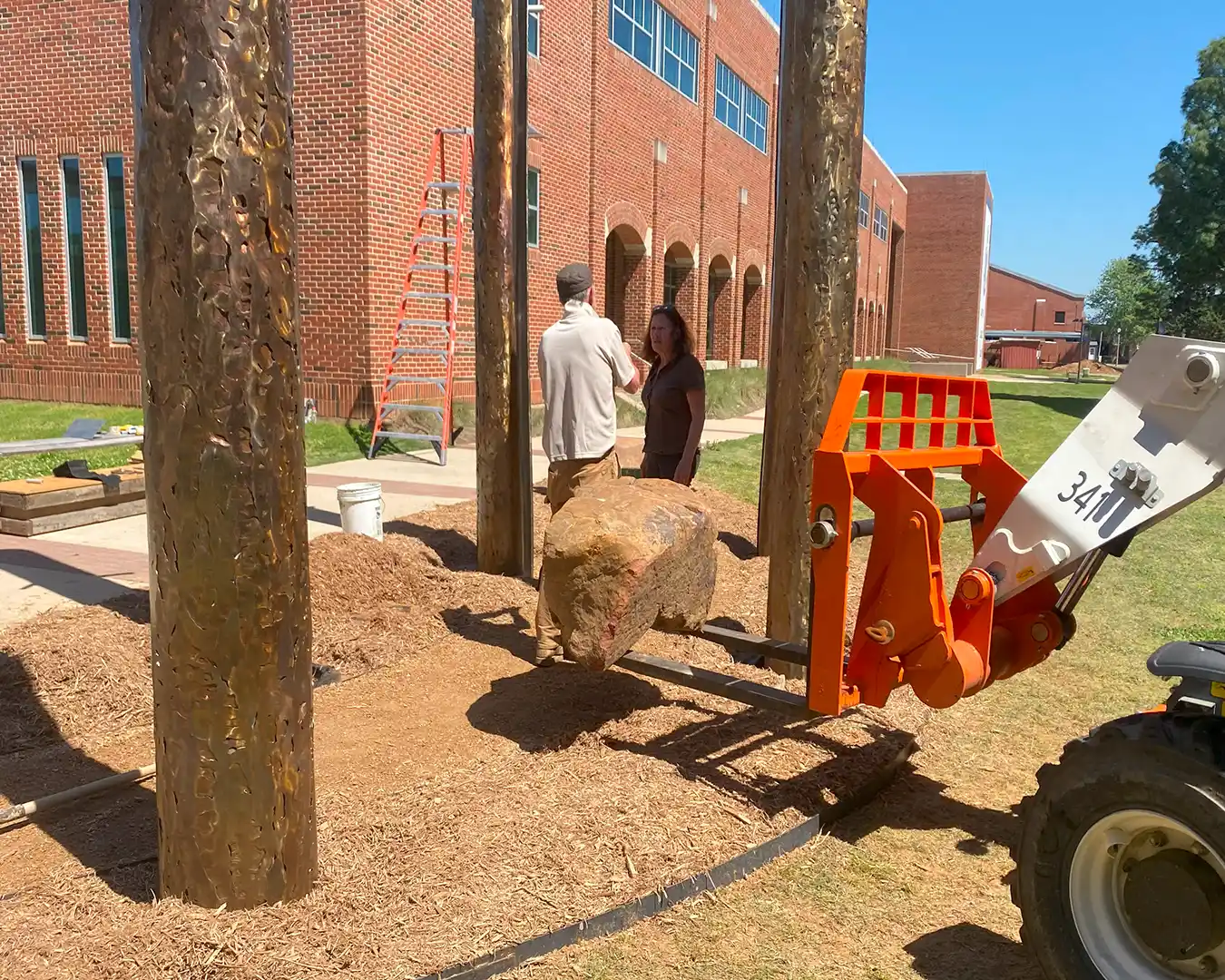 This project called for more than materials, it demanded meaning. The Carolin Dormand Memorial at NSU honors the life and legacy of a beloved figure, with a serene space that invites quiet reflection. We provided custom-cut stone elements that echo the surrounding landscape while creating a powerful visual presence. The trees illuminated by uplighting and the careful placement of stone create a sense of reverence and calm proof that nature and memory can coexist beautifully.